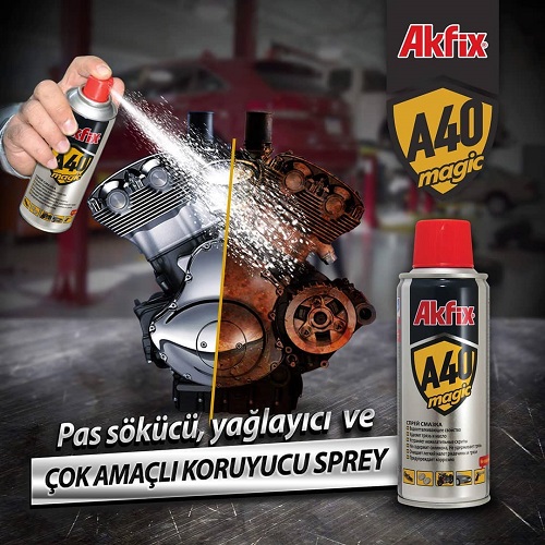 Akfix A40 Magic là một chất ức chế ăn mòn, chất bôi trơn và bình xịt bảo vệ đa mục đích. Nó có công thức đặc biệt, kết hợp nhiều tính chất như làm sạch, bôi trơn, nới lỏng phần rỉ sét, thoát hơi ẩm. A40 Magic có thể được sử dụng trong lao động công nghiệp, gia đình và hàng ngày.