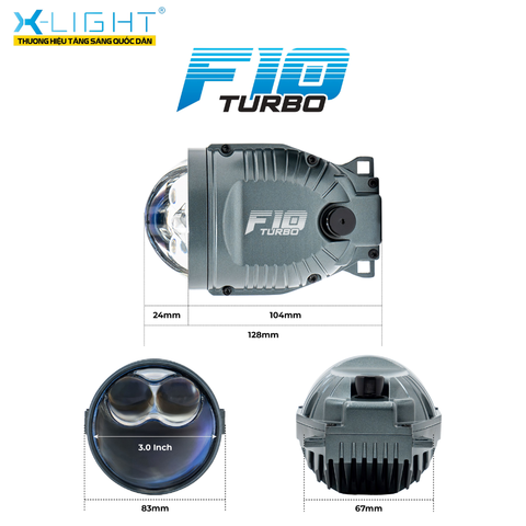 Điểm mạnh của Bi gầm X-Light F10 Turbo nằm ở hiệu năng ánh sáng: trang bị 6 chip LED chính + 2 chip LED Osram trợ pha, hỗ trợ chế độ Cos đạt 40 W, cho vùng sáng rộng, bám đường; và chế độ Pha đến 65 W, giúp ánh sáng lan tới 200–300 m – mạnh hơn khoảng 1,5 lần so với thế hệ cũ.