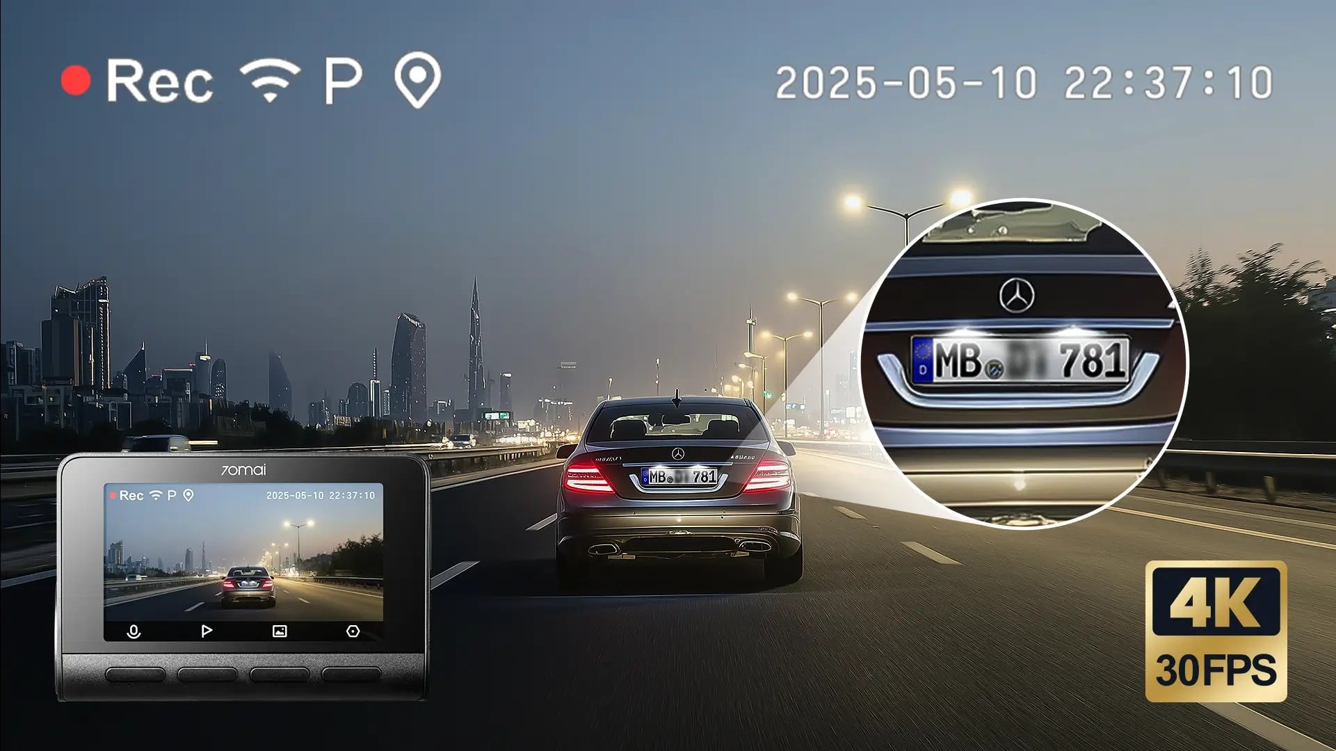 A800SE ghi lại mọi khoảnh khắc với độ phân giải 4K UHD (3840x2160), đảm bảo từng chi tiết nhỏ nhất trên đường đều được tái hiện một cách sống động và chân thực. Cùng với tốc độ 30 khung hình/giây, video luôn mượt mà, giúp bạn dễ dàng nắm bắt mọi tình huống quan trọng mà không bị bỏ lỡ.