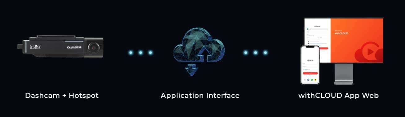 Với Wi-Fi tích hợp, bạn có thể dễ dàng kết nối camera hành trình G-ON3 với điện thoại thông minh thông qua ứng dụng GNET APP. Điều này cho phép bạn xem video trực tiếp, xem lại các file đã ghi và thay đổi cài đặt một cách thuận tiện. Đặc biệt, với công nghệ withCLOUD, bạn có thể giám sát xe từ xa, mọi lúc, mọi nơi khi có kết nối internet.