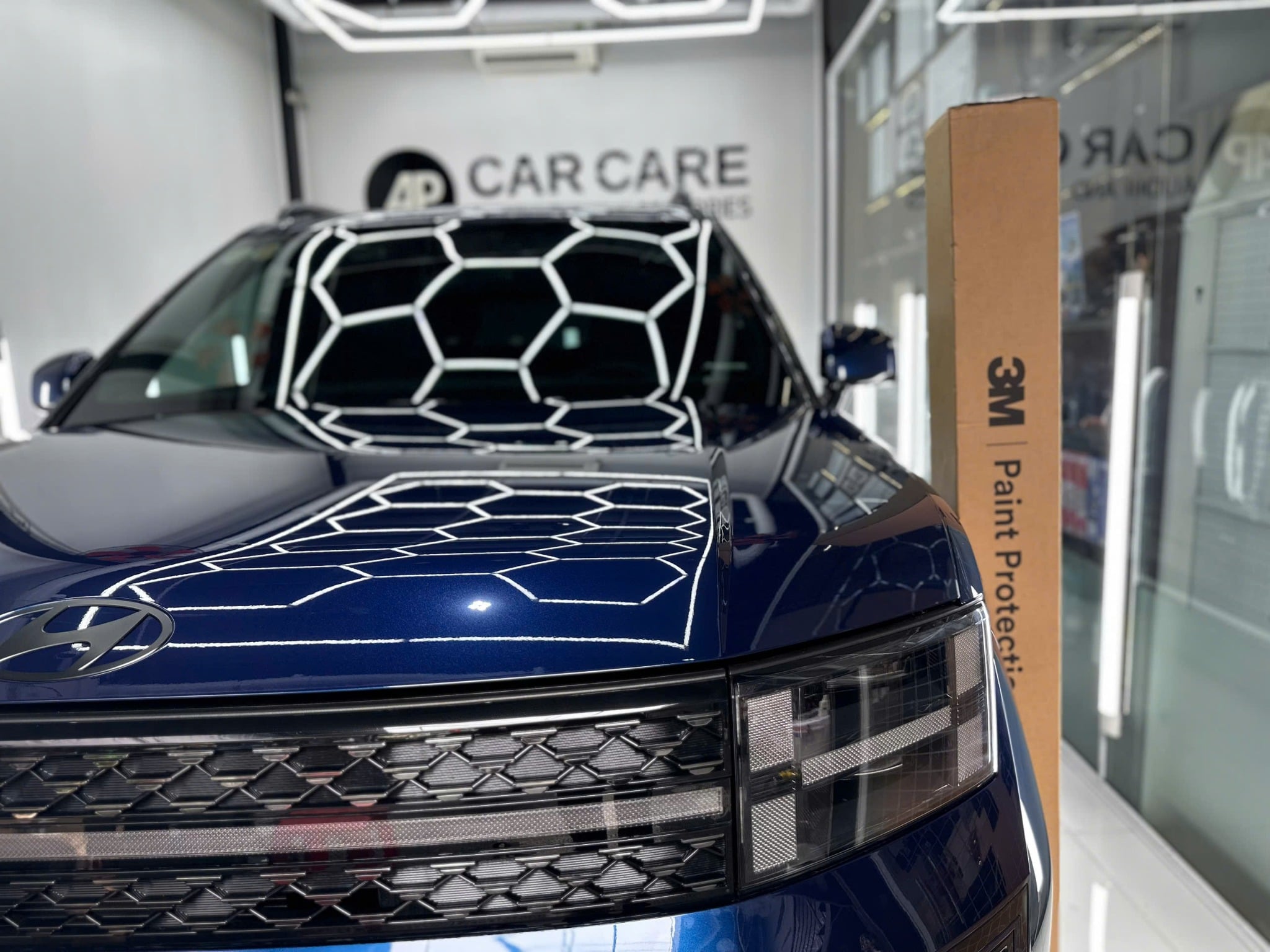 AP Car Care chân thành cảm ơn Anh/Chị đã tin tưởng dịch vụ dán PPF ô tô HYUNDAI. Do PPF có độ trong suốt cao, nếu dán thẳng lên vết trầy nhỏ thì phim có thể làm lộ hoặc nổi bật các vết xước cũ đó. Vì vậy, chúng tôi luôn khuyến khích Anh/Chị nên xử lý đánh bóng và hiệu chỉnh sơn để xóa các vết trầy trước, đảm bảo bề mặt sơn đạt độ hoàn hảo tối đa trước khi dán PPF.