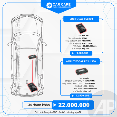 Cấu hình phối ghép tham khảo Loa sub hơi ô tô FOCAL PSB 200